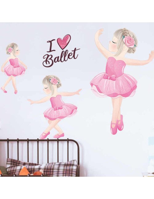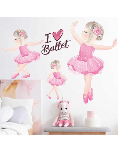 Self Adhesive Waterproof Hot-Selling Ballet Dancing Girl Wall Decoration Stickers Decals For Nursery Baby Kids Room