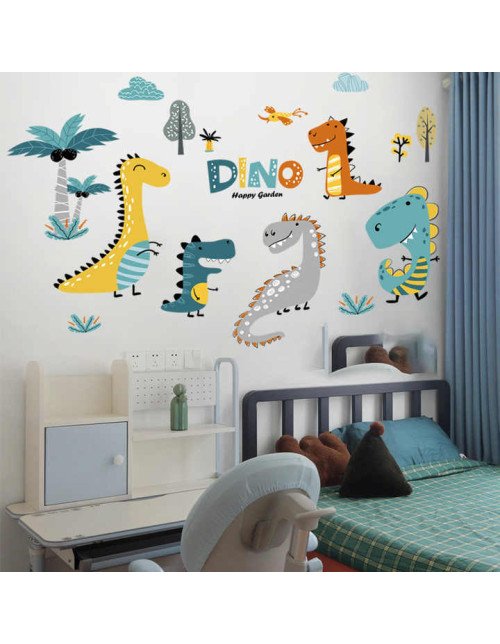 Removable Self Adhesive Cartoon Dino Pvc Preschool 3D Wall Stickers
