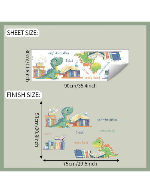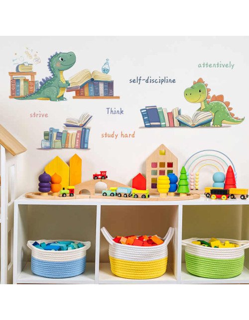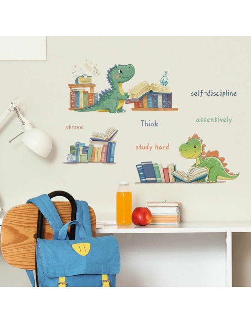 Self Adhesive Cartoon Dinosaur Read Book Wall Stickers For School