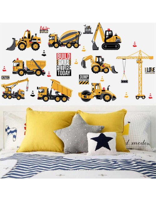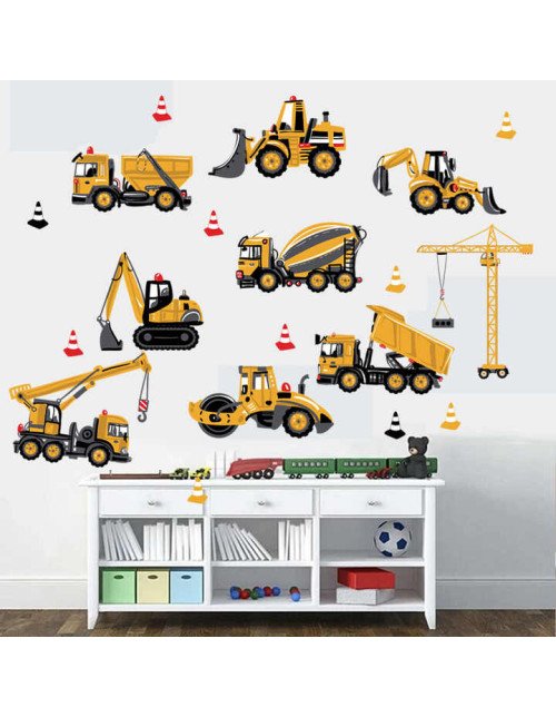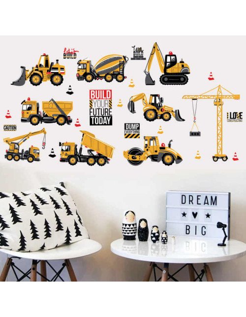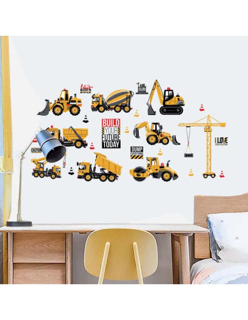Home Decor Colorful 3D Traffic Removable Excavator Kids Room Wall Stickers