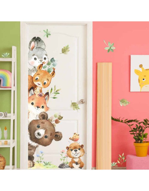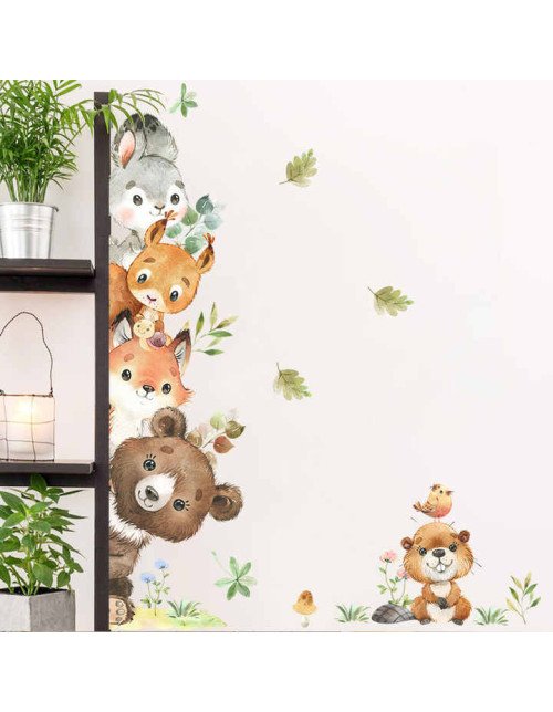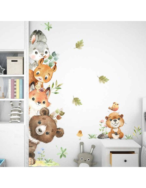 Self Adhesive Pvc Cartoon Animal Watercolor Wall Stickers For Bedroom