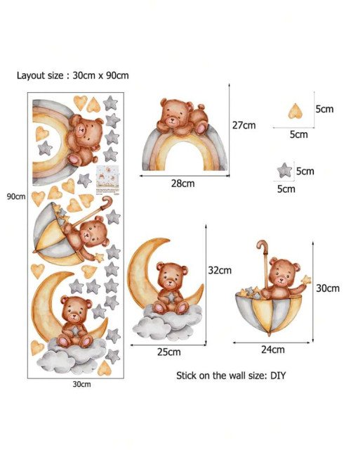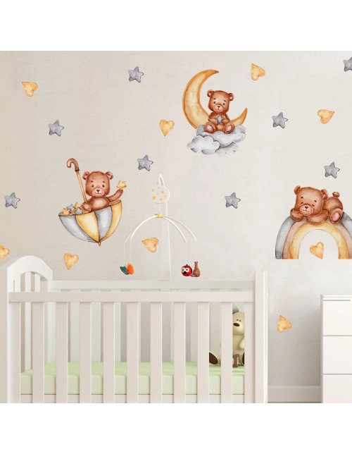 Rainbow Teddy Bear 3d Wall Stickers – Magical Baby Room Decor