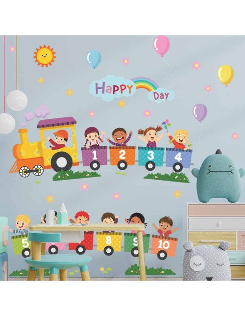 Self Adhesive Cartoon Train Baby Nursery Wall Stickers Picture