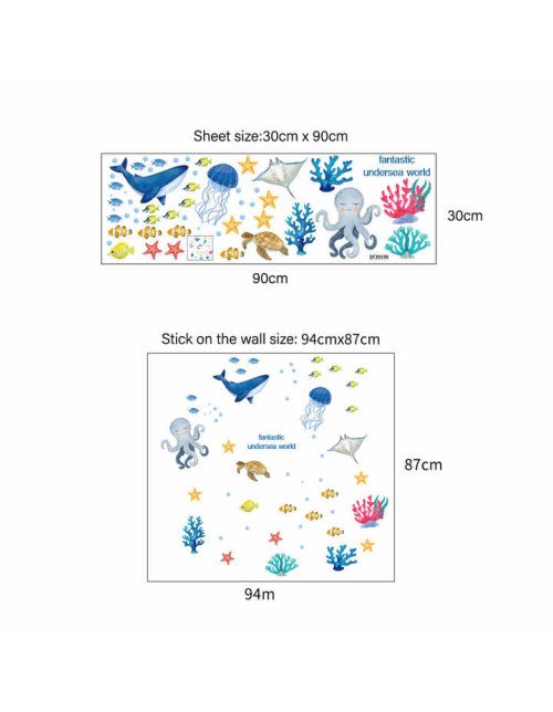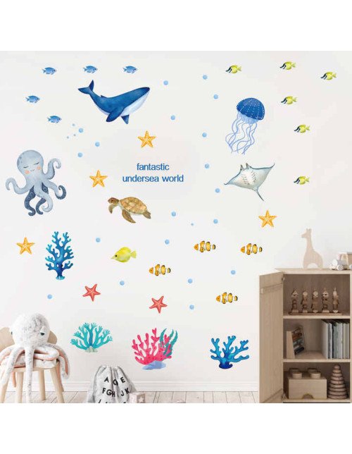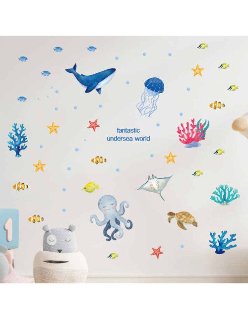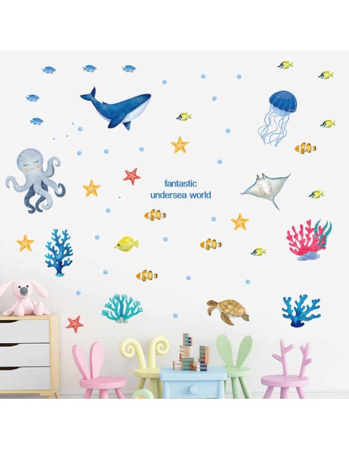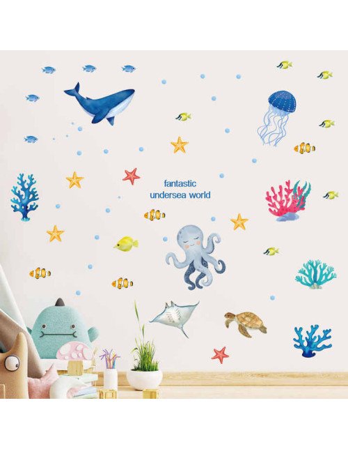 Home Decoration Self Adhesive Cartoon Underwater Animal Baby Nursery Wall Stickers Picture