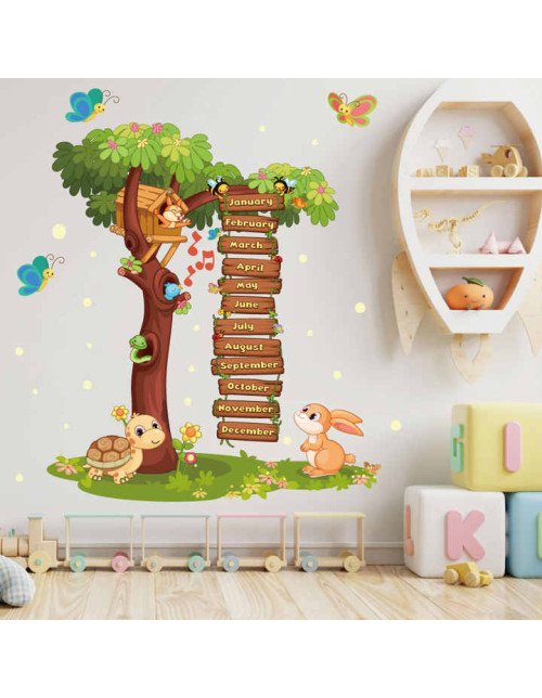 Self Adhesive School Classroom Cartoon Animal Tree Wall Stickers Children