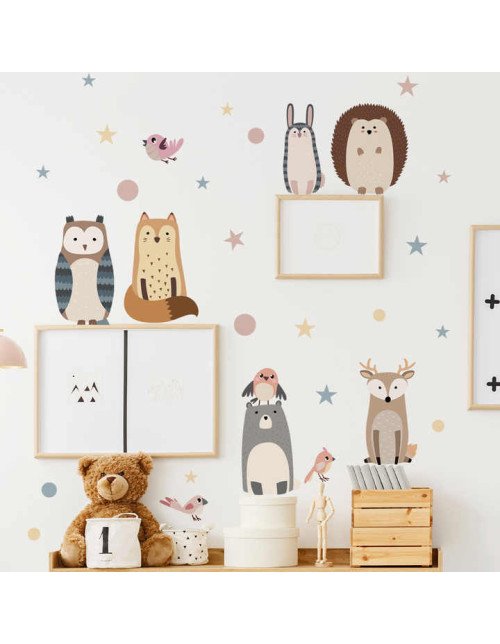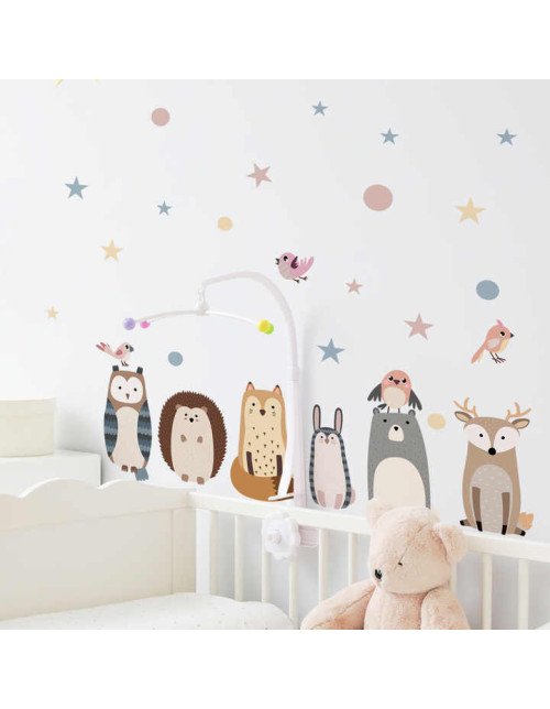 Self Adhesive Cartoon Animal With Stars Living Room Children's Room Decor Wall Stickers