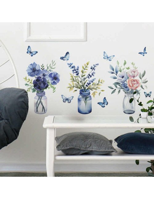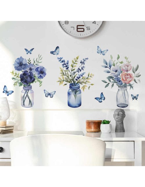 Living Room Decoration Wholesale Pvc Flower Vase Wall Stickers
