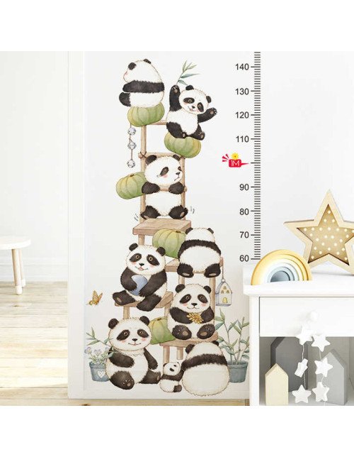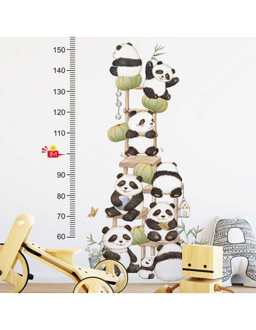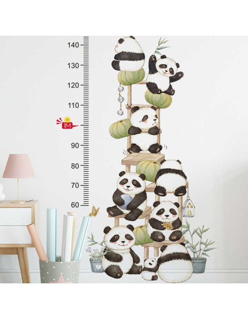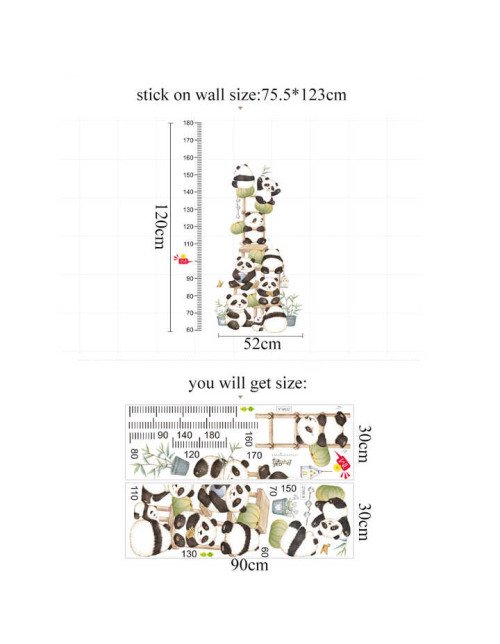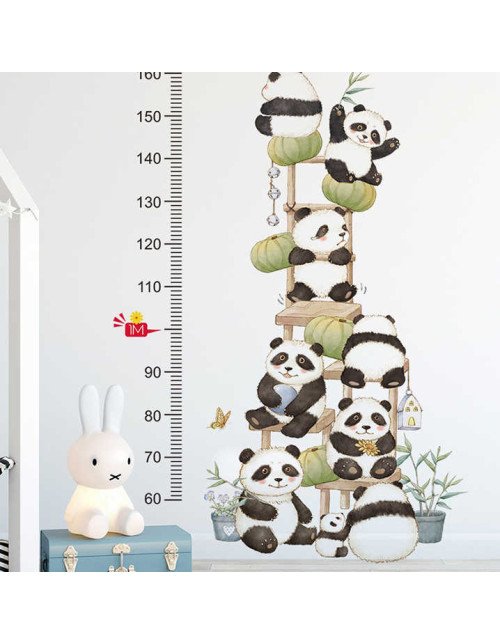 Self-adhesive Cartoon Panda Height Measurement Wall Decals For Kids
