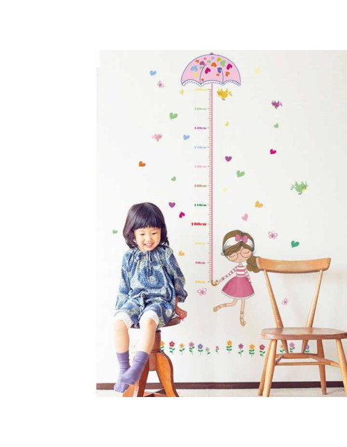 Removable Girl Room Decor Cartoon Umbrella Height Measure Wall Sticker