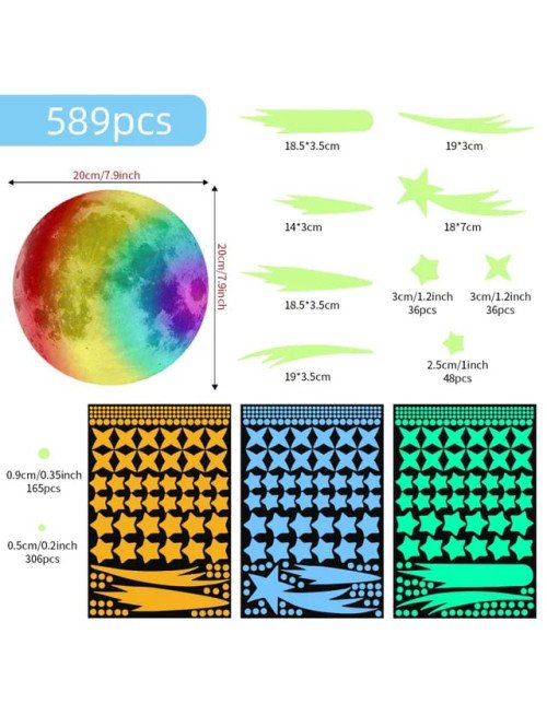 2025 Latest Self Adhesive Home Decor Kids Room 3d Moon Stars El Glow Sticker