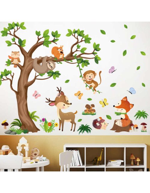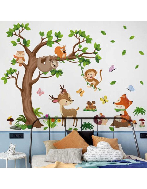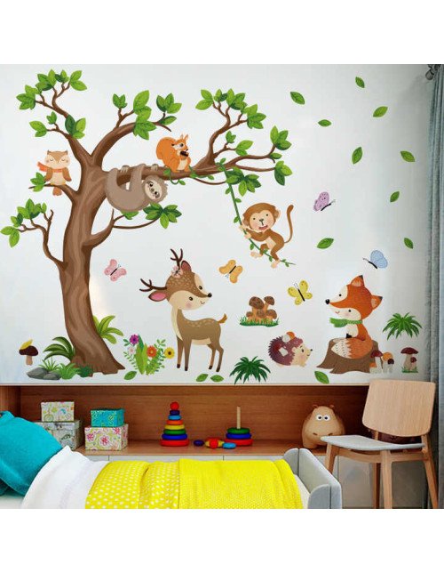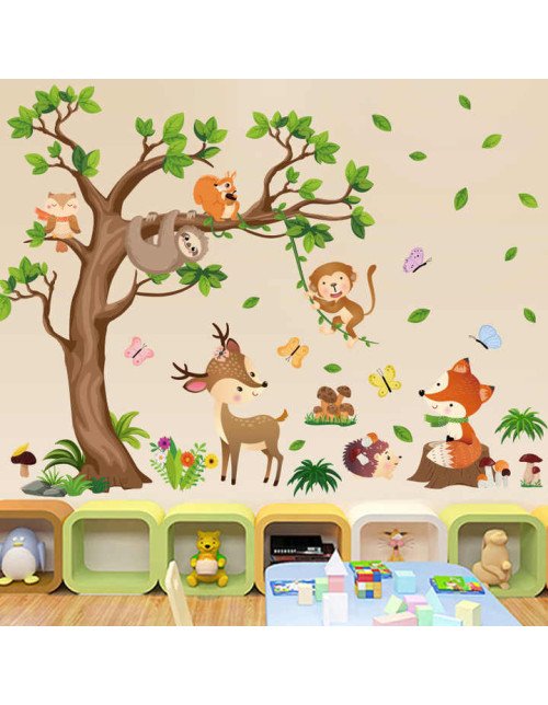 Removable Nursery School Jungle Animal Tree Kids Wall Stickers