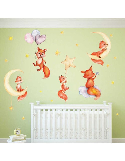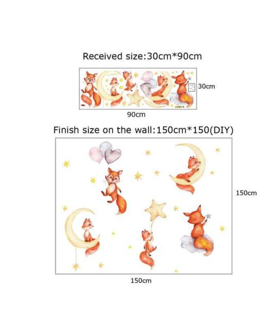 Latest Self Adhesive 3D Fox With Moon Cartoon Baby Room Decor Wall Stickers