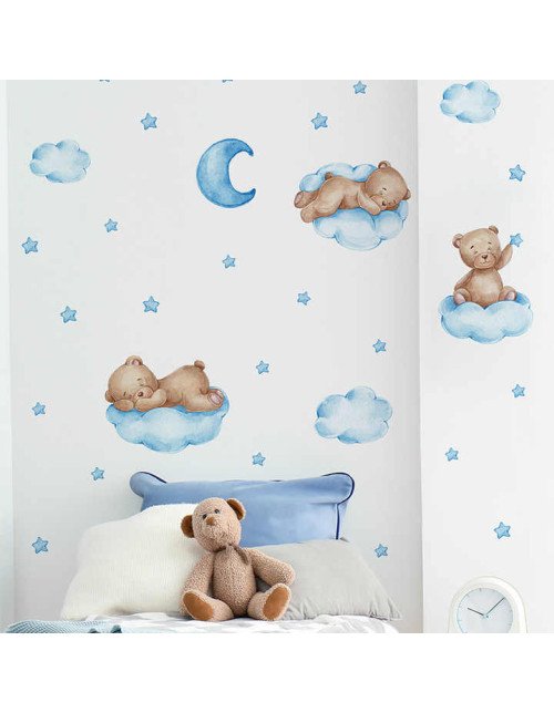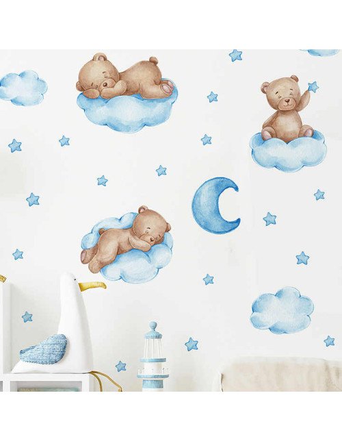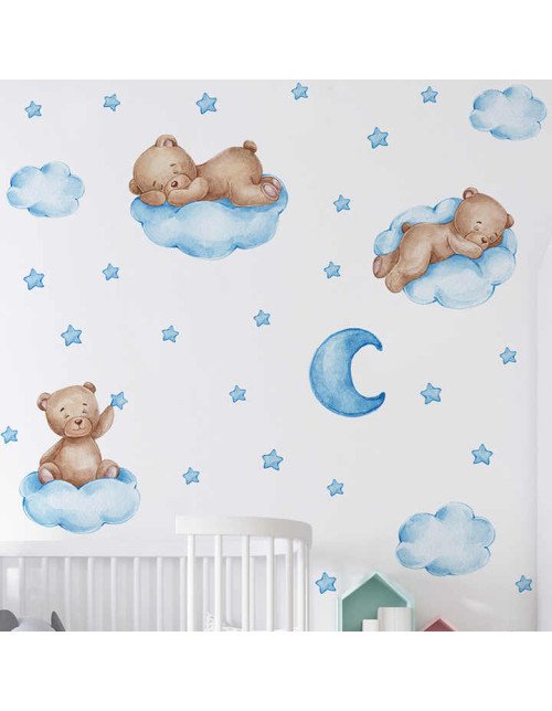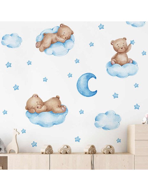 Self Adhesive 3D Bear With Cloud Baby Room Decor Wall Stickers