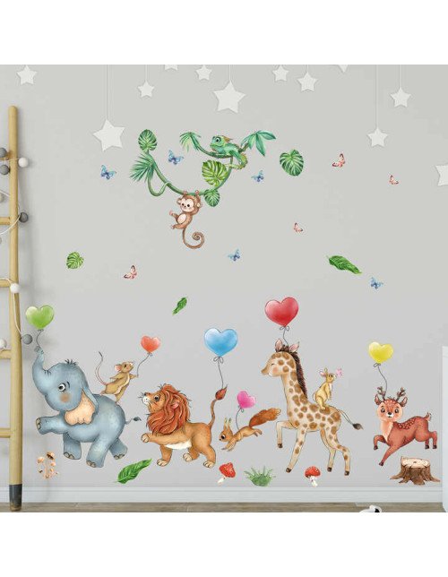 Self Adhesive Cartoon Woodland Animal Kindergarten Wall Sticker