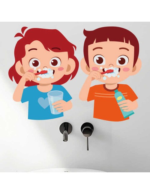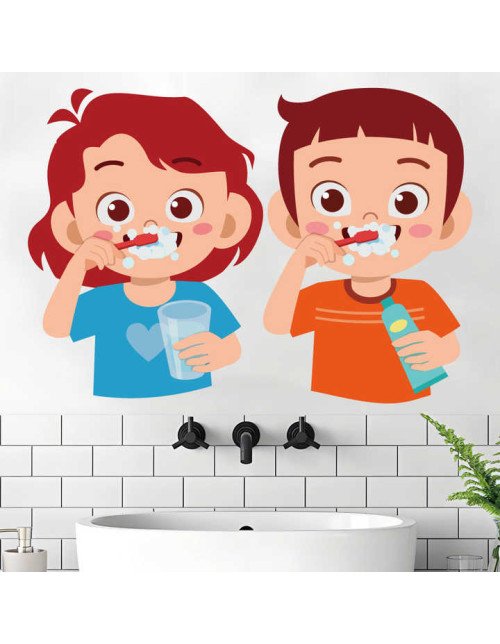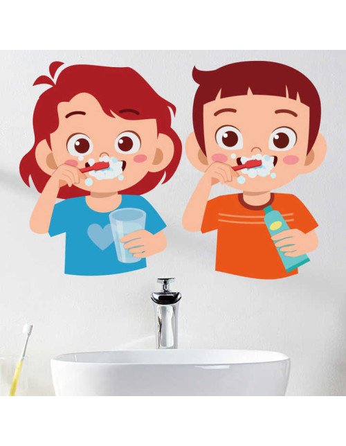 Self Adhesive Wall Decoration Cartoon Boy Girl Brush Sticker For Bathroom