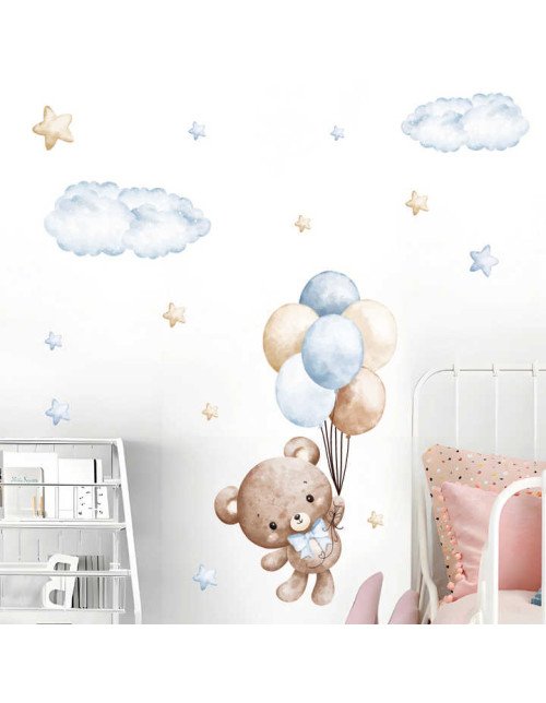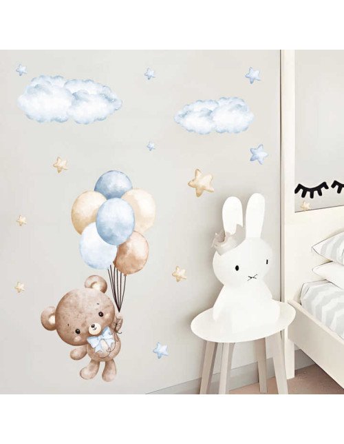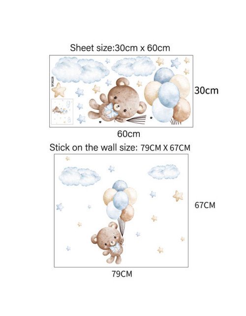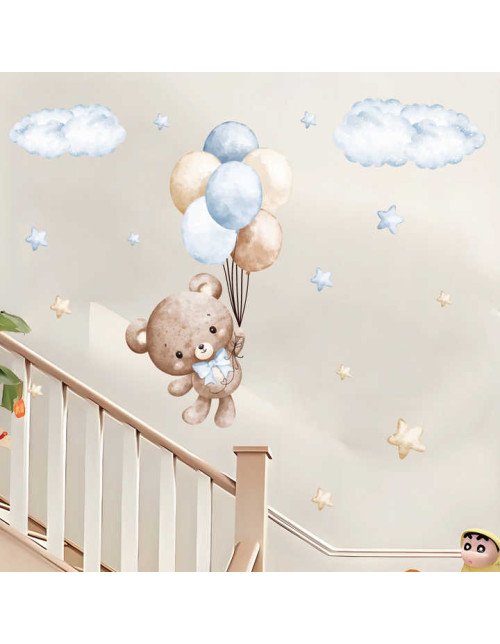 Removable Cartoon Bear With Balloon Kindergarten Wall Stickers