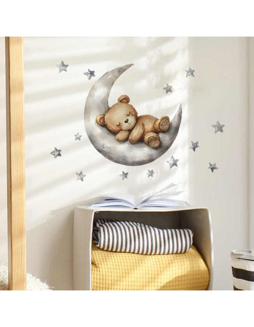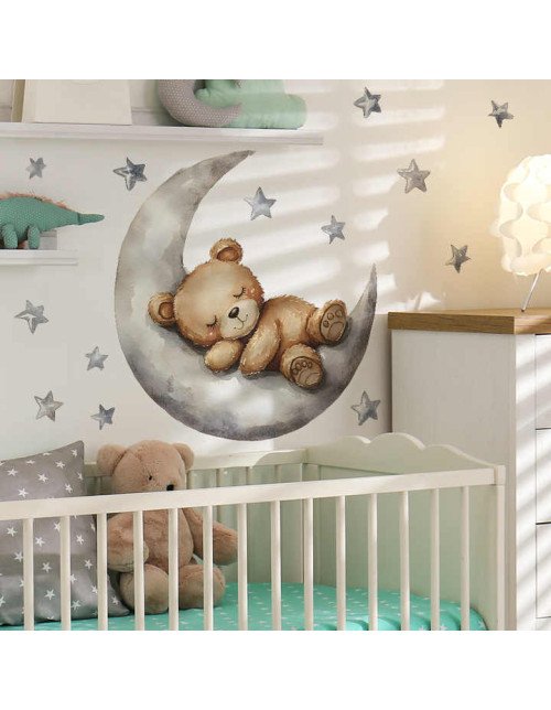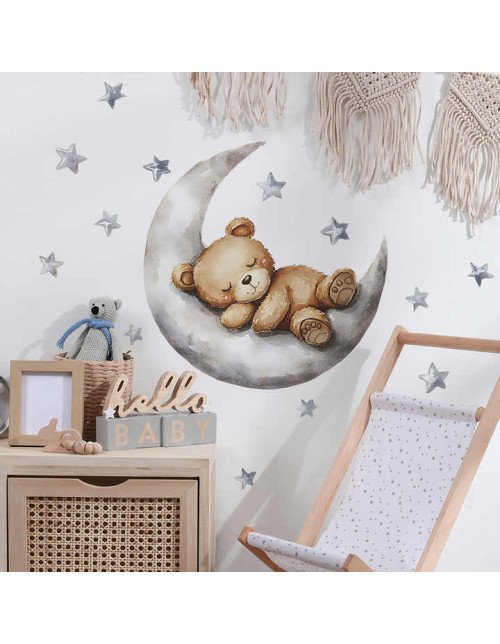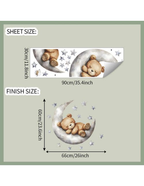 Removable Cartoon Bear Sleep On Moon Baby Nursery Wall Stickers Picture