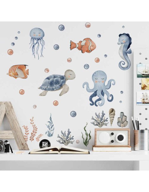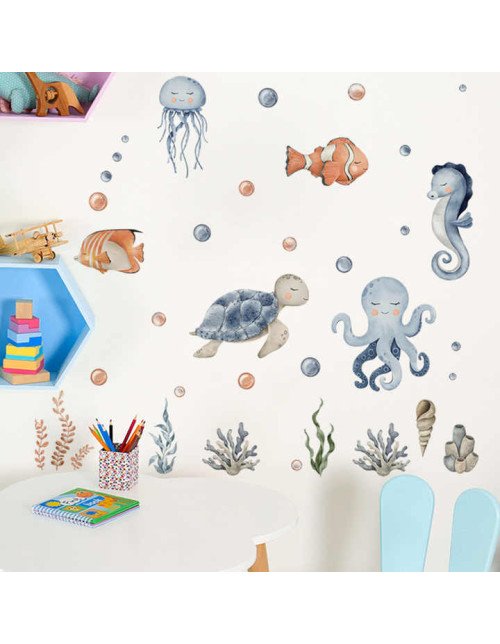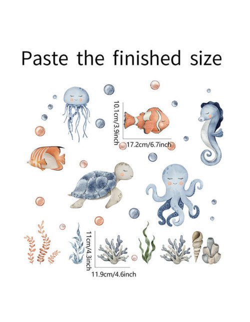 Self Adhesive Bathroom Removable Cartoon Underwater Animal Wall Sticker Baby