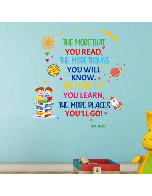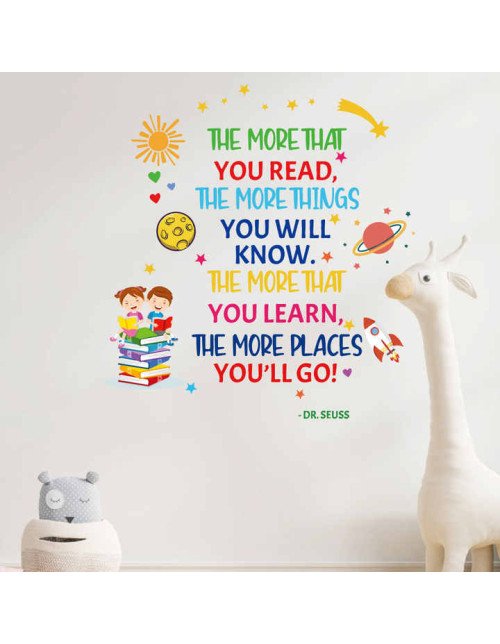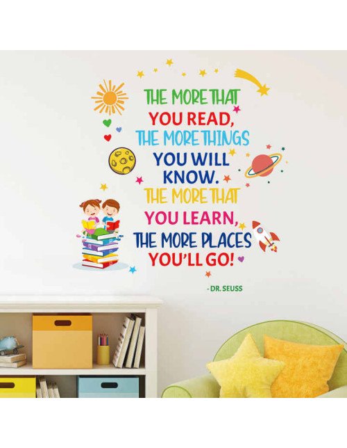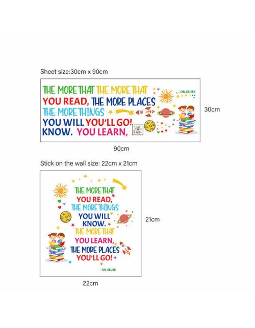 Removable Adhesive Library Cartoon Read Book Inspirational Quote Wall Stickers For School Decorations