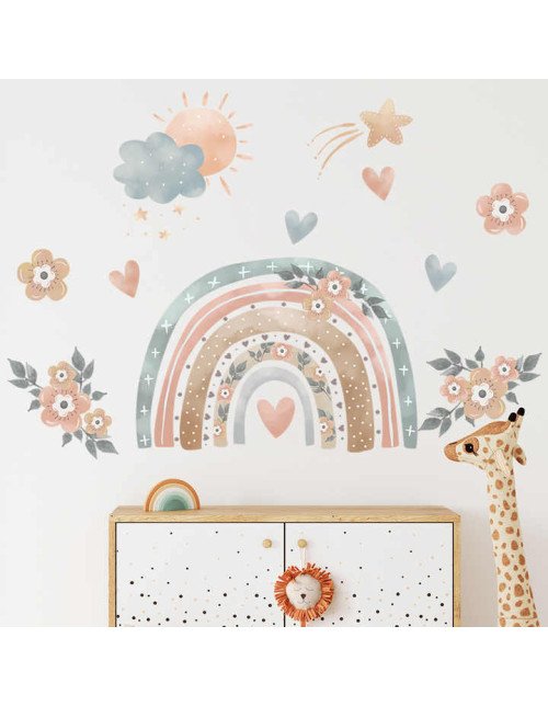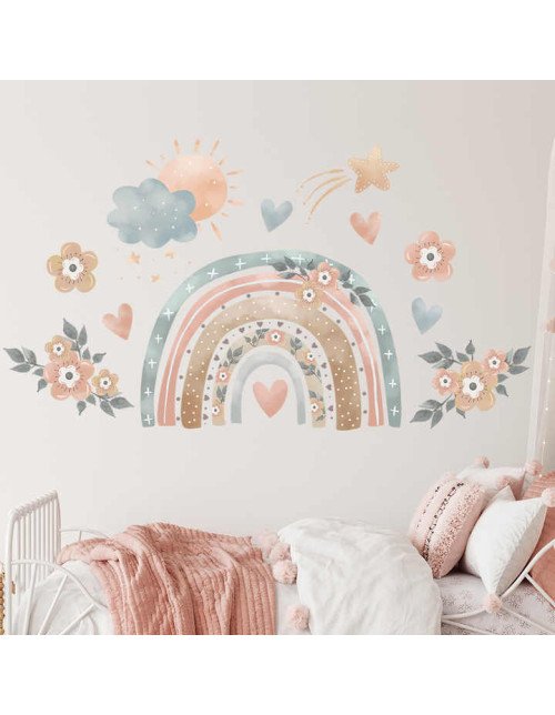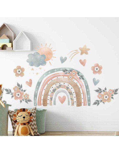 Self Adhesive Transparent Pvc Flower Rainbow Wall Stickers For Kids Room